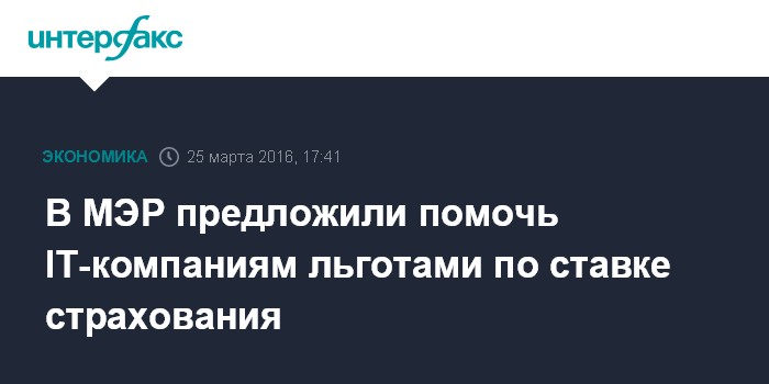 Москва. 25 марта. INTERFAX.RU - Минэкономразвития опубликовало на сайте для публичного обсуждения проектов нормативных актов уведомление о начале разработки законопроекта о льготах по страховым взносам для IT-отрасли.
