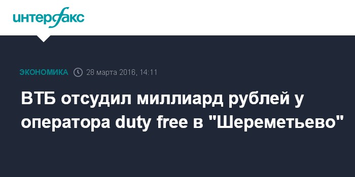 ВТБ отсудил миллиард рублей у оператора duty free в "Шереметьево"