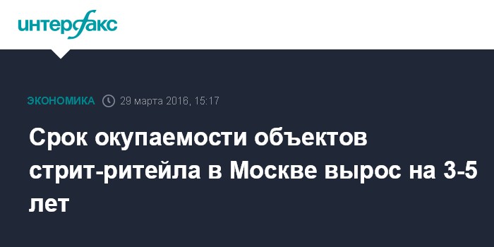 Срок окупаемости объектов стрит-ритейла в Москве вырос на 3-5 лет