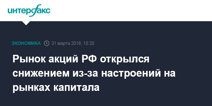 Москва. 31 марта. INTERFAX.RU - Сегодняшние торги российский фондовый рынок начал снижением на фоне смешанных настроений на глобальных рынках капитала и падения мировых цен нефти.