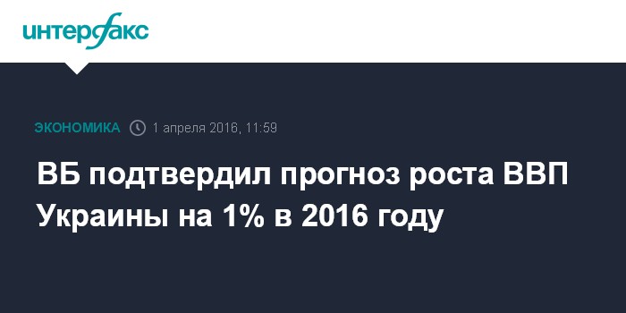 Москва. 1 апреля. INTERFAX.RU - Всемирный банк подтвердил прогноз роста реального ВВП Украины в 2016 году на уровне 1%, сообщил директор Всемирного банка (ВБ) по Украине, Беларуси и Молдове Чимяо Фан.