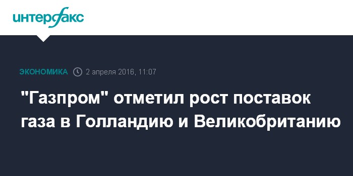 "Газпром" отметил рост поставок газа в Голландию и Великобританию