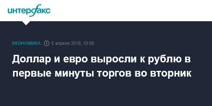 Москва. 5 апреля. INTERFAX.RU - Доллар и евро выросли во вторник при открытии торгов на "Московской бирже", рубль снижается третьи торги подряд на фоне падения мировых цен нефти.