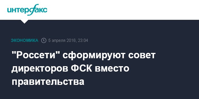 "Россети" сформируют совет директоров ФСК вместо правительства