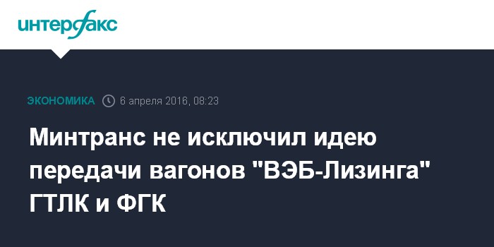 Москва. 6 апреля. INTERFAX.RU - Заместитель министра транспорта РФ Алексей Цыденов на совещании десятого марта по вопросам консолидации универсальных вагонов поручил проанализировать финансовое состояние "ВЭБ-Лизинга" (ВЭБЛ), а ПАО "Государственная транспортная лизинговая компания" (ГТЛК) и АО "Федеральная грузовая компания" (ФГК) - подготовить предложения о передаче парка ВЭБЛ в ФГК, пишут в среду "Ведомости" со ссылкой на копию протокола.