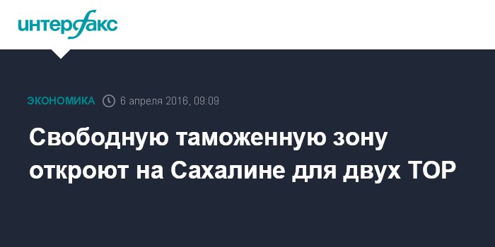 Москва. 6 апреля. INTERFAX.RU - Свободная таможенная зона в соответствии с правом Евразийского экономического союза будет действовать на территориях опережающего развития (ТОР) "Горный воздух" и "Южная" в Сахалинской области, сообщает пресс-служба правительства региона.