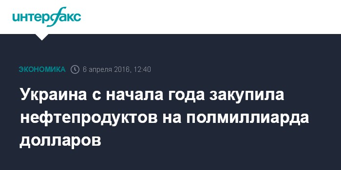 Москва. 6 апреля. INTERFAX.RU - Украина в январе-марте 2016 года импортировала 1 млн 473,773 тыс. тонн нефтепродуктов (по коду ТНВЭД 2710 - бензины, дизтопливо, мазут, реактивное топливо и другие) на общую сумму $541,94 млн, в том числе в марте - на $194,781 млн.