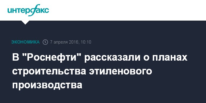 В "Роснефти" рассказали о планах строительства этиленового производства