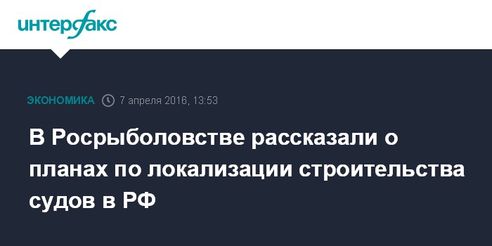 Москва. 7 апреля. INTERFAX.RU - Росрыболовство и Минпромторг готовят программу локализации строительства рыбопромысловых судов в РФ, сообщил журналистам руководитель Росрыболовства Илья Шестаков.