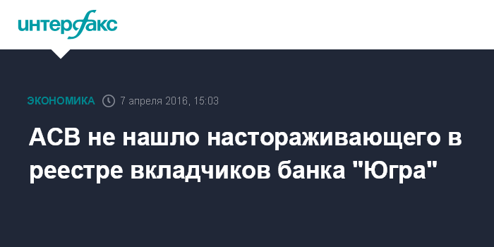 АСВ не нашло настораживающего в реестре вкладчиков банка "Югра"