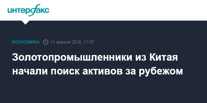 Золотопромышленники из Китая начали поиск активов за рубежом