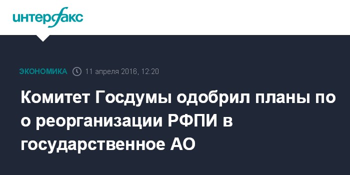 Комитет Госдумы одобрил планы по о реорганизации РФПИ в государственное АО