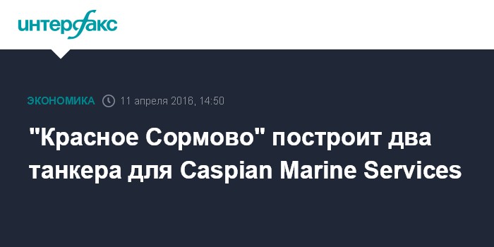 Москва. 11 апреля. INTERFAX.RU - ОАО "Завод "Красное Сормово" (Нижний Новгород, входит в "Объединенную судостроительную корпорацию", ОСК) заключил контракты с компанией Caspian Marine Services Limited (CMS) на строительство и поставку двух танкеров проекта RST27, говорится в сообщении завода.