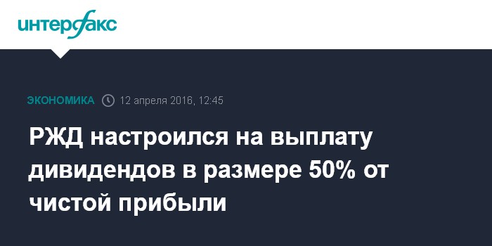 Москва. 12 апреля. INTERFAX.RU - ОАО "РЖД" может выплатить дивиденды в размере 50% от чистой прибыли за 2015 год, но совет директоров монополии может обратиться в правительство для корректировки этой нормы, сообщил вице-премьер, глава совета директоров РЖД Аркадий Дворкович журналистам в Москве.