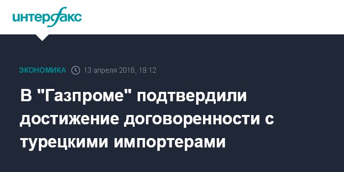 В "Газпроме" подтвердили достижение договоренности с турецкими импортерами