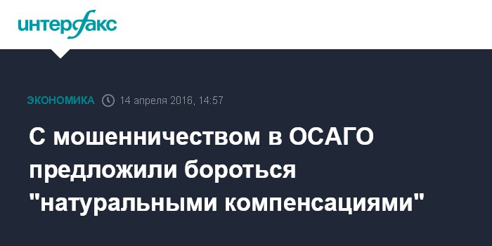 Ханжин предложил рассмотреть возможность поручить Банку России проработать вариант перехода исключительно на "натуральную форму" возмещения убытков в ОСАГО. Таким образом, считает он, можно будет бороться с мошенническими схемами в данном виде страхования, создать дополнительные рабочие места.