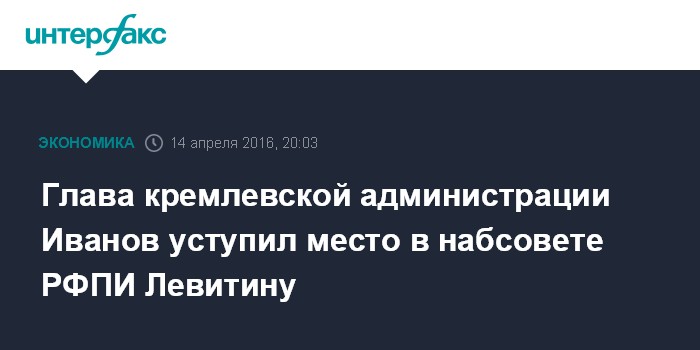 Глава кремлевской администрации Иванов уступил место в набсовете РФПИ Левитину