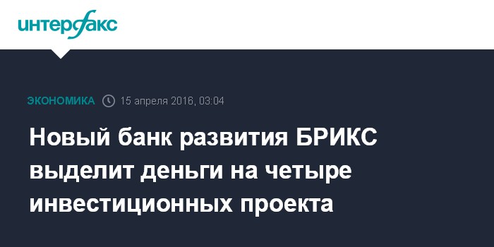 Новый банк развития БРИКС выделит деньги на четыре инвестиционных проекта