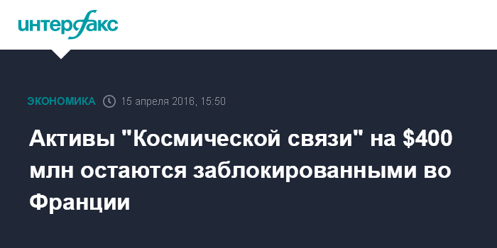 Активы "Космической связи" на $400 млн остаются заблокированными во Франции