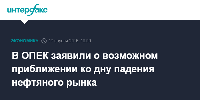В ОПЕК заявили о возможном приближении ко дну падения нефтяного рынка