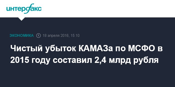 Москва. 18 апреля. INTERFAX.RU - Чистый убыток ПАО "КАМАЗ" в 2015 году по МСФО составил 2,38 млрд рублей против 211 млн рублей чистой прибыли в 2014 году, говорится в отчете компании.