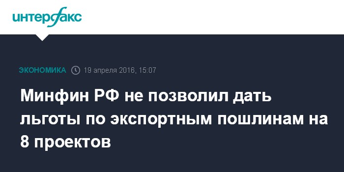 Минфин РФ не позволил дать льготы по экспортным пошлинам на 8 проектов