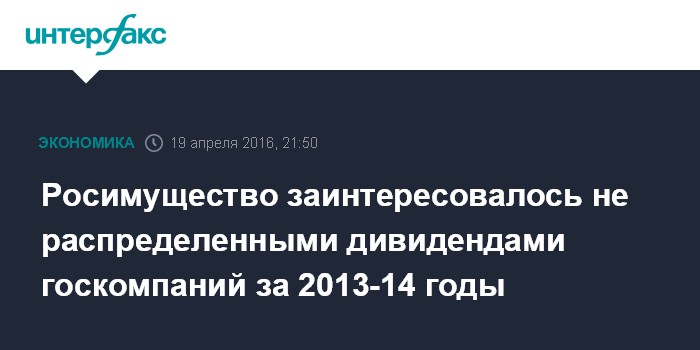 На прошлой неделе Росимущество разослало АО из спецперечня (около пятидесяти компаний, в которых позицию государства как акционера формирует правительство) письмо о подготовке к годовым собраниям акционеров. Документ, с которым ознакомился "Интерфакс", в частности, предписывает компаниям "обеспечить проведение мониторинга решений ГОСА в части распределения чистой прибыли АО Спецперечня по итогам деятельности в 2013-2014 годах".