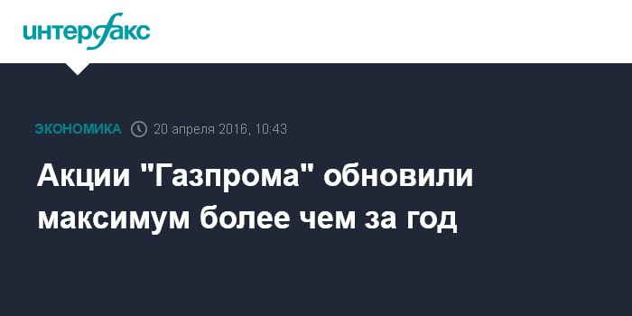 Москва. 20 апреля. INTERFAX.RU - Акции "Газпрома" утром в среду продолжили начавшийся накануне рост на новостях о решении правительства РФ направлять на выплаты дивидендов компаниями с госучастием не менее 50% от чистой прибыли по итогам 2015 года.