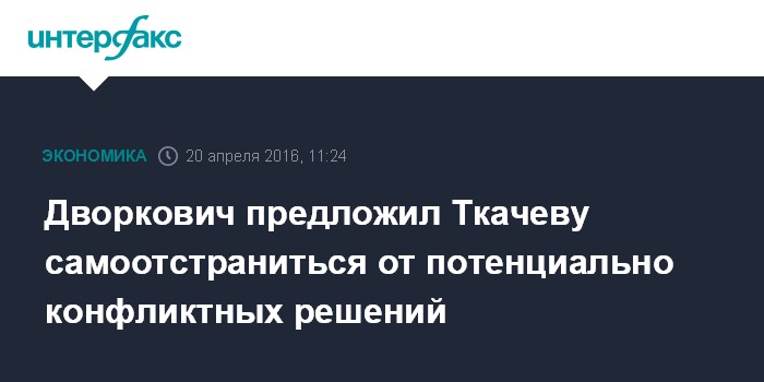 Дворкович предложил Ткачеву самоотстраниться от потенциально конфликтных решений