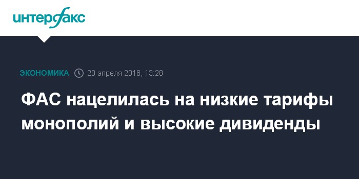 ФАС нацелилась на низкие тарифы монополий и высокие дивиденды
