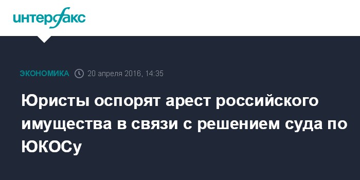 Юристы оспорят арест российского имущества в связи с решением суда по ЮКОСу