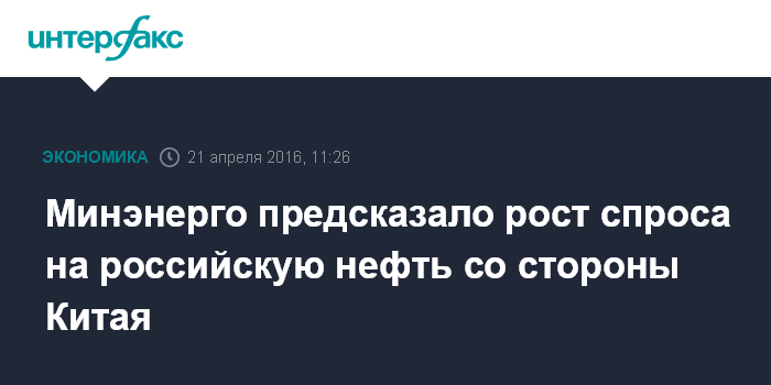 Минэнерго предсказало рост спроса на российскую нефть со стороны Китая
