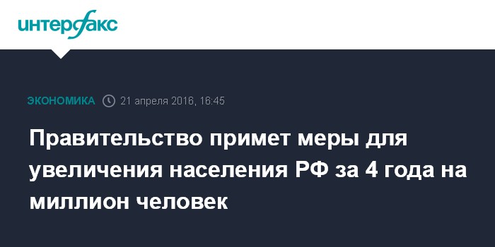 Правительство примет меры для увеличения населения РФ за 4 года на миллион человек