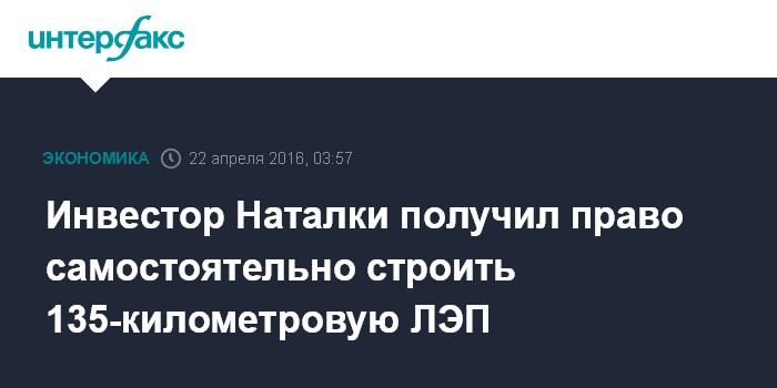 Инвестор Наталки получил право самостоятельно строить 135-километровую ЛЭП