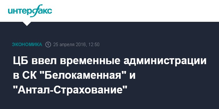 ЦБ ввел временные администрации в СК "Белокаменная" и "Антал-Страхование"