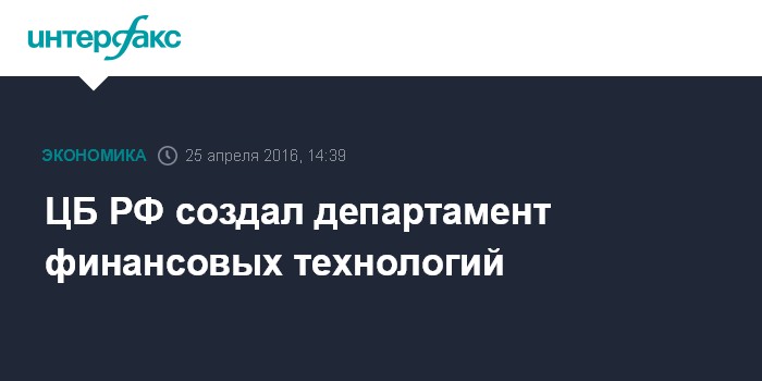 Москва. 25 апреля. INTERFAX.RU - Банк России создал новое подразделение - департамент финансовых технологий, проектов и организации процессов, который будет сформирован на базе действующих центров компетенции по проектному и процессному управлению, говорится в сообщении регулятора.