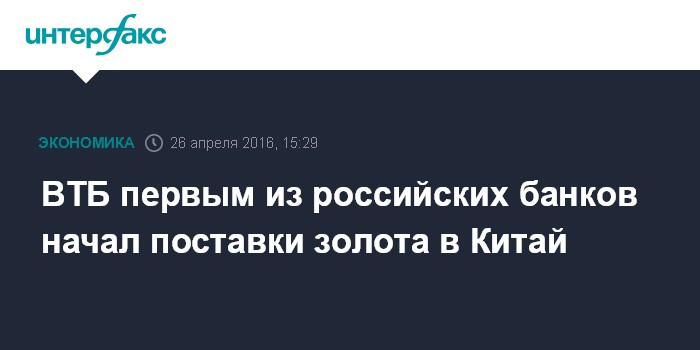 Москва. 26 апреля. INTERFAX.RU - ВТБ первым из российских банков вышел на рынок прямых поставок физического золота в Китай, отправив первую партию металла на китайский рынок, сообщил банк.