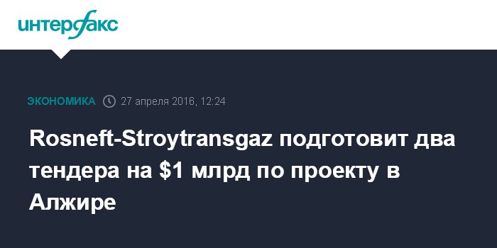 Rosneft-Stroytransgaz подготовит два тендера на $1 млрд по проекту в Алжире
