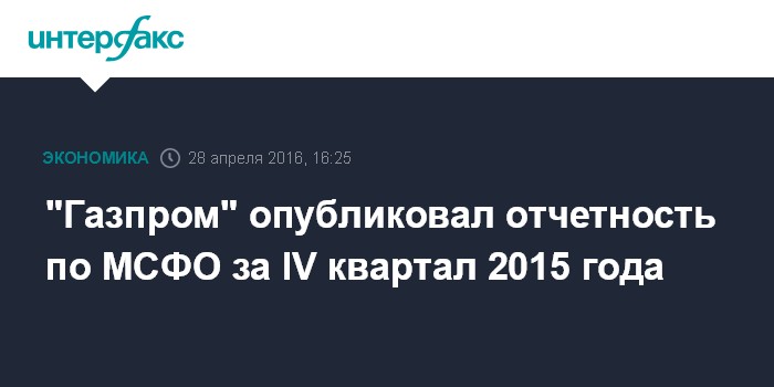 "Газпром" опубликовал отчетность по МСФО за IV квартал 2015 года