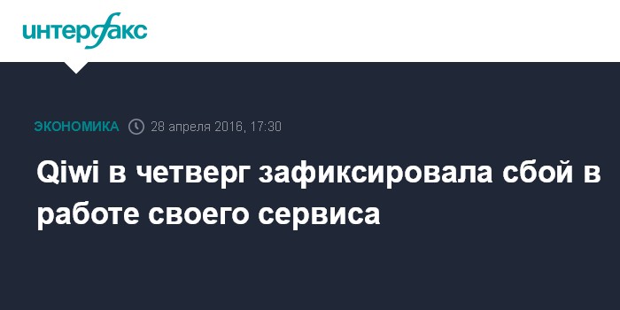 Москва. 28 апреля. INTERFAX.RU -Qiwi plc в четверг днем зафиксировала сбой в работе своего платежного сервиса, говорится в сообщении компании в социальной сети "ВКонтакте".