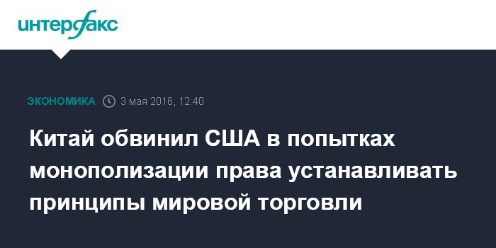 Китай обвинил США в попытках монополизации права устанавливать принципы мировой торговли