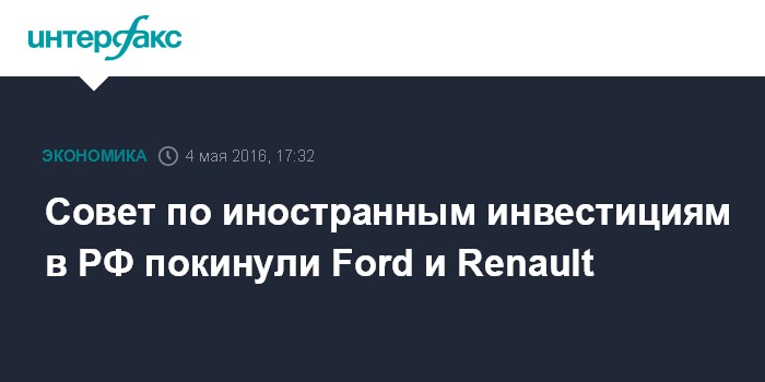 Совет по иностранным инвестициям в РФ покинули Ford и Renault