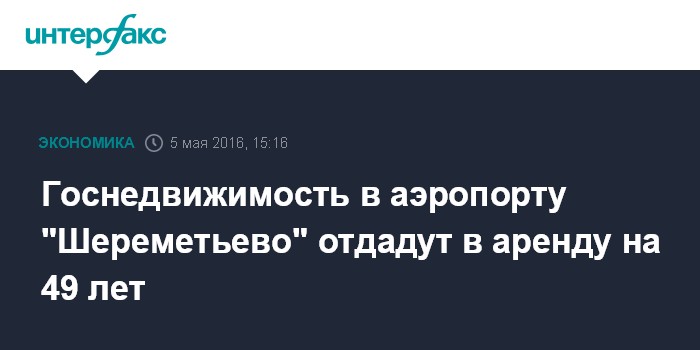 Москва. 5 мая. INTERFAX.RU - Правительство РФ разрешило передать в аренду оператору аэропорта "Шереметьево" - АО "Международный аэропорт Шереметьево" - недвижимое имущество на срок до 49 лет, следует из постановления, опубликованного на портале правовой информации.