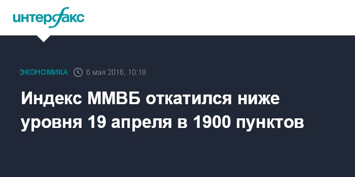 Индекс ММВБ откатился ниже уровня 19 апреля в 1900 пунктов