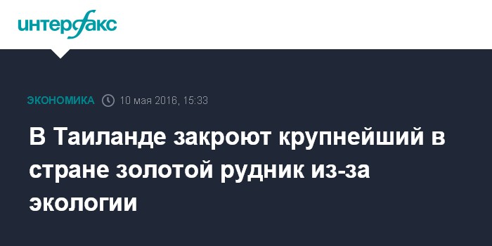 Москва. 10 мая. INTERFAX.RU - Таиланд к концу 2016 года закроет крупнейший в стране золотой рудник Chatree, поскольку ущерб, наносимый окружающей среде и здоровью работников, перевешивает экономическую выгоду от дальнейшей разработки месторождения, сообщает агентство Bloomberg.