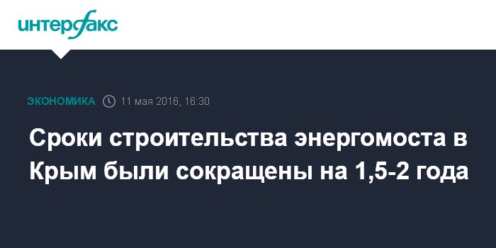 Москва. 11 мая. INTERFAX.RU - Сроки строительства энергетического моста в Крым по отдельным объектам были сокращены на полтора-два года, заявил глава Минэнерго РФ Александр Новак.