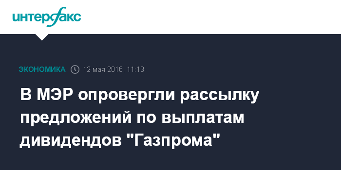 Москва. 12 мая. INTERFAX.RU - Минэкономразвития РФ опровергло информацию о подготовленной и направленной на согласование директиве по дивидендам "Газпрома".