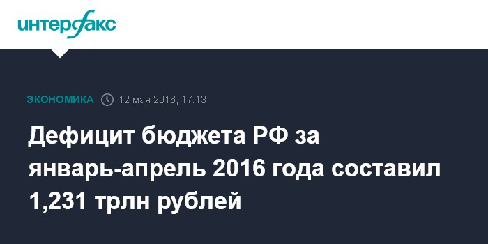 Дефицит бюджета РФ за январь-апрель 2016 года составил 1,231 трлн рублей
