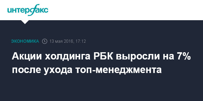 Москва. 13 мая. INTERFAX.RU - Акции холдинга РБК вечером в пятницу подскочили на 7% на новостях, что ряд топ-менеджеров покинули компанию.