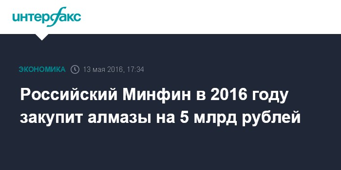 Москва. 13 мая. INTERFAX.RU - Минфин РФ в 2016 году закупит алмазы на 5 млрд рублей, сообщил журналистам замминистра финансов Алексей Моисеев.